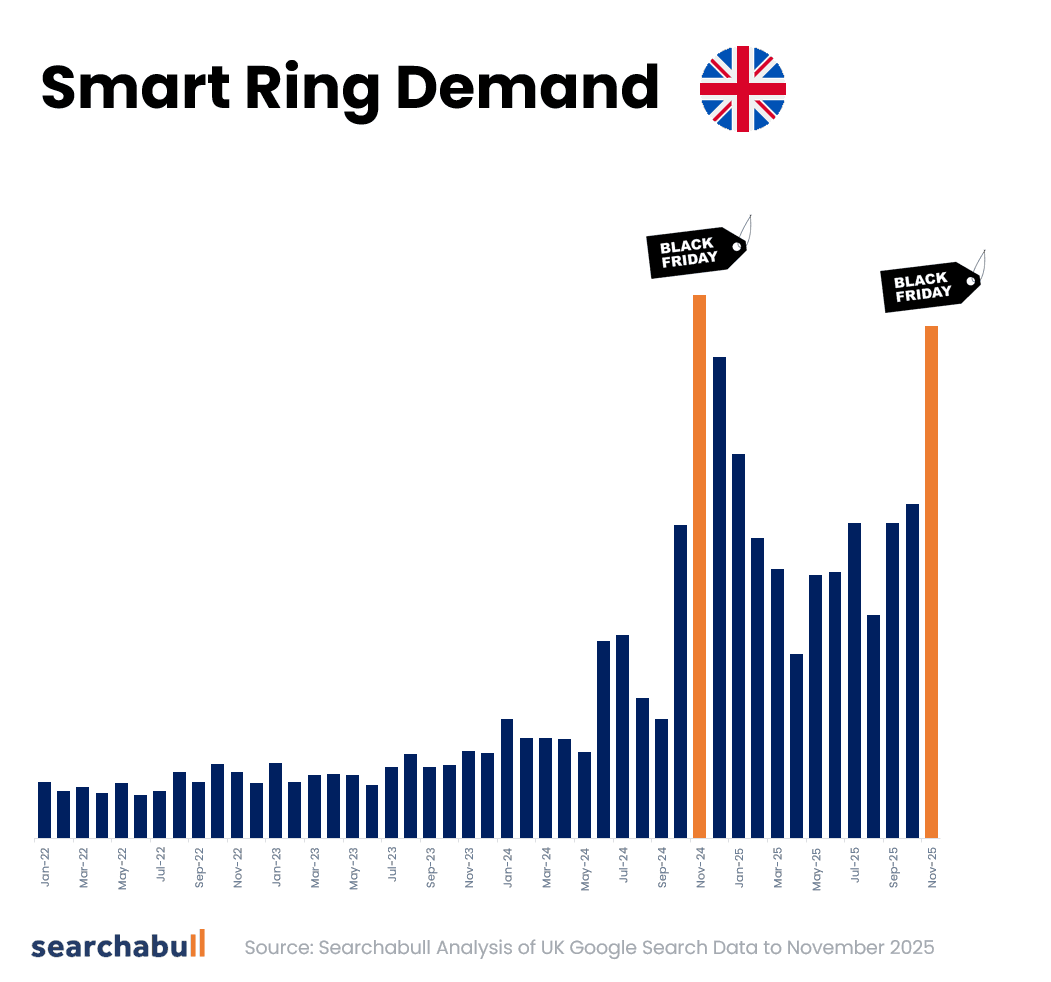 November 2025 marked the first month in which smart ring search demand failed to grow, breaking a long-standing upward trend. On its own, that would already be notable. The fact that it occurred during Black Friday, traditionally the strongest demand period of the year, makes the shift far more significant.
